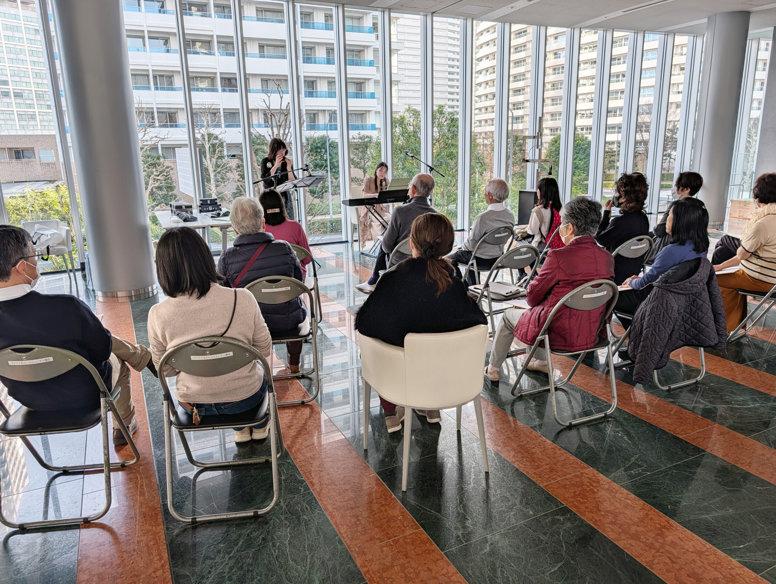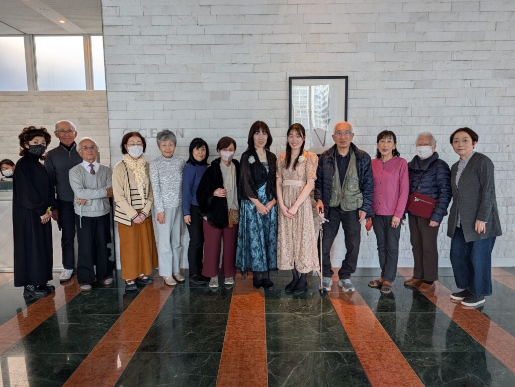 1年ぶりのロビーコンサート、演奏を楽しみにしていたという方に加えて、エントランスで演奏を聴いた方が立ち寄ったりして、延べ19名の方に来場いただきました。