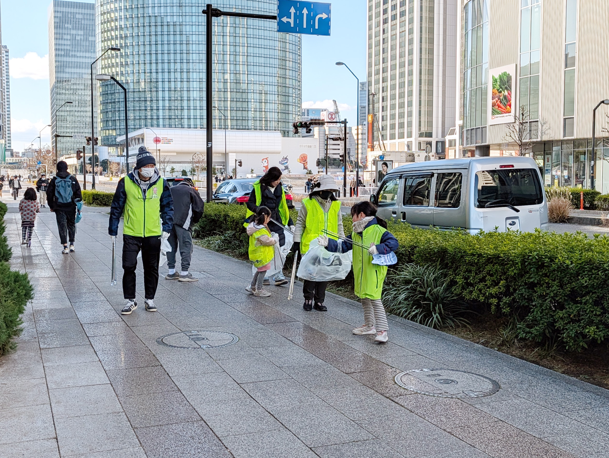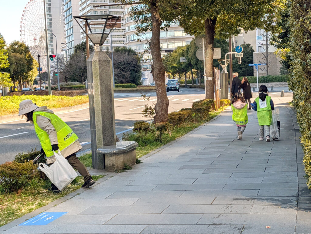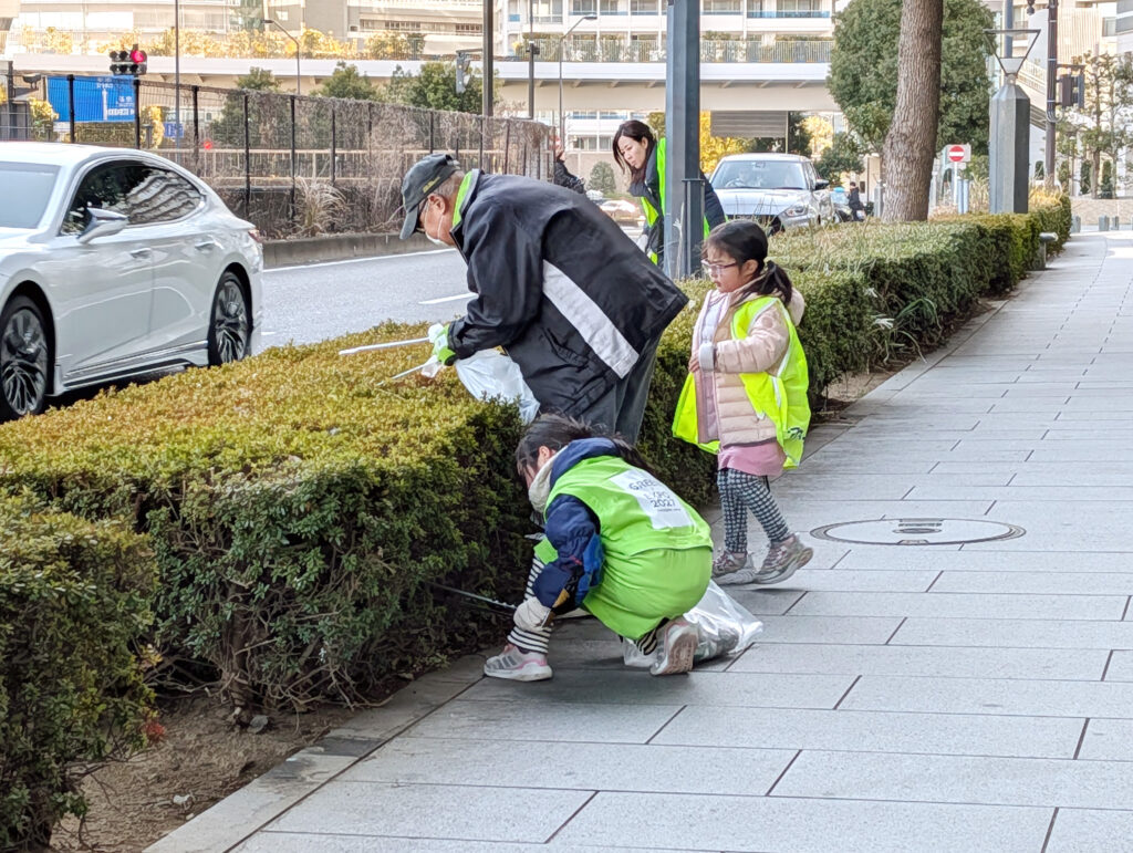 寒さもひと段落して、春の気配を感じる中、7名が参加してみなとみらい地区のマンション周辺のゴミ拾いをしました。 参加した子どもたちが、「あった!」と、われ先にゴミを拾いに行く姿が印象的で、大人の視点では見えない茂みの中のゴミもたくさん見つけていました。 午前中の公園愛護会から連続をして参加する方も多く、公園とは違う環境でのごみ拾いを体験しました。